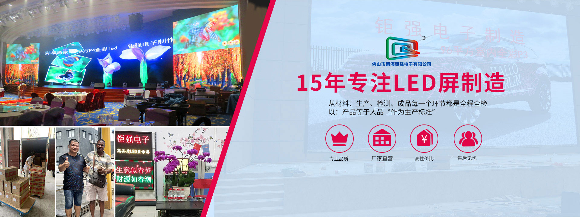 你好,我是佛山市南海鉅強(qiáng)電子有限公司,專業(yè)LED顯示屏十五年!